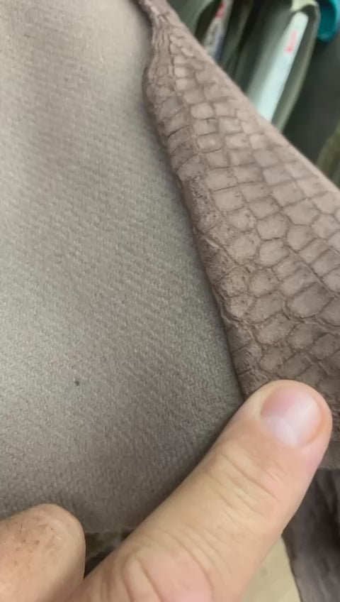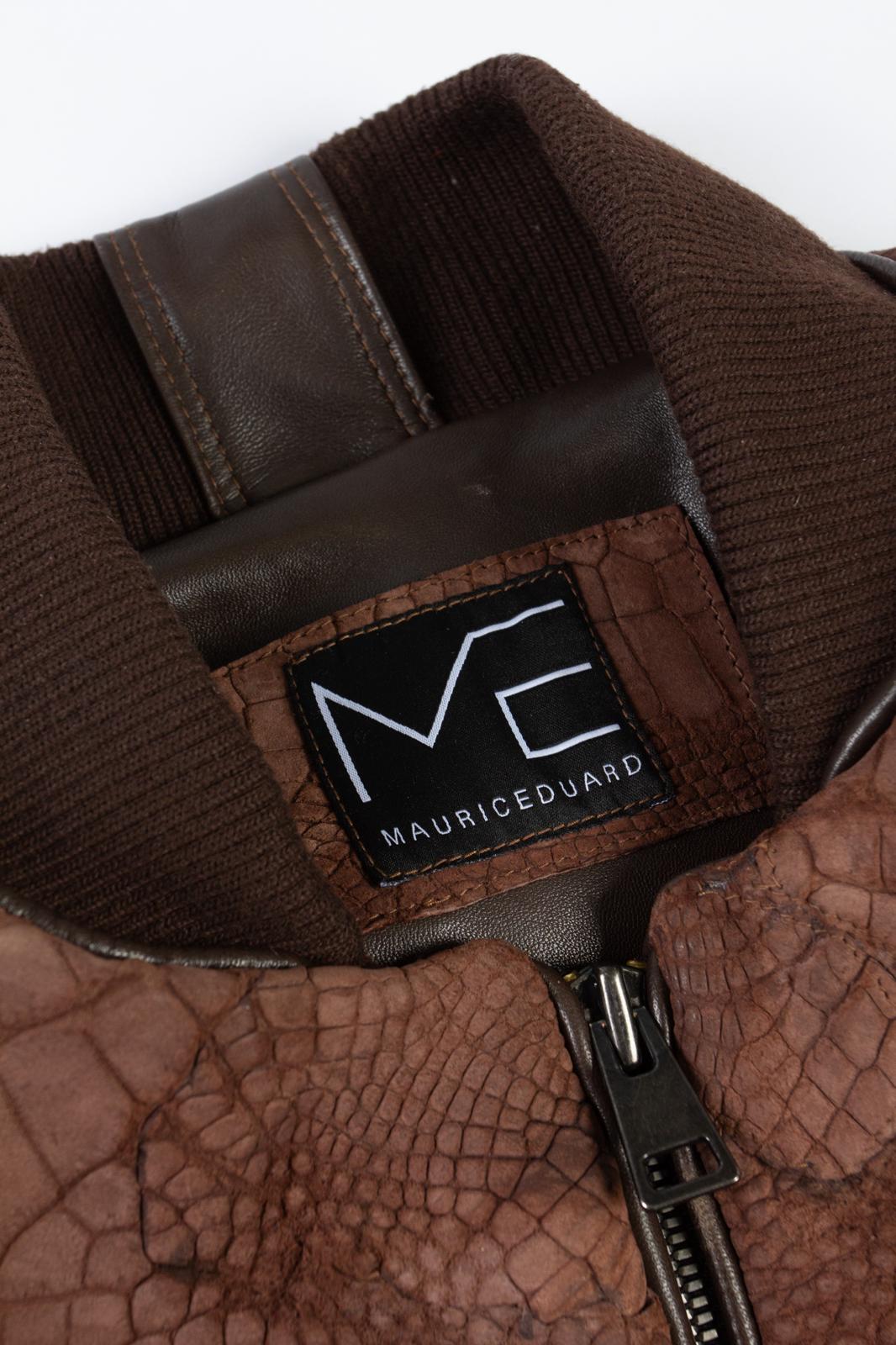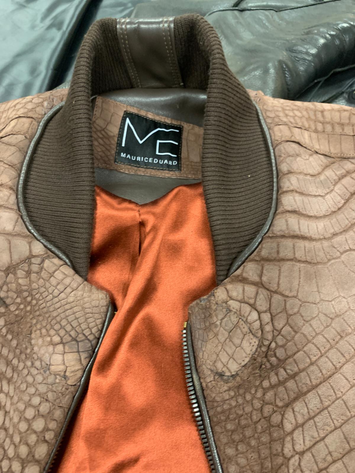 Varsity Teddy College Jacket, Cigar coloured Nubuck finish, 100% Croco skin. 100% silk lining and double Jersey Collar.